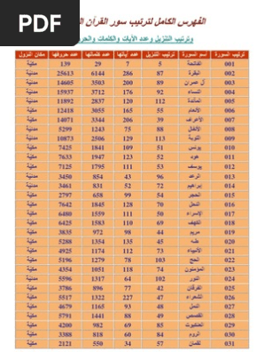 الفهرس الكامل لترتيب سور القرآن الكريم