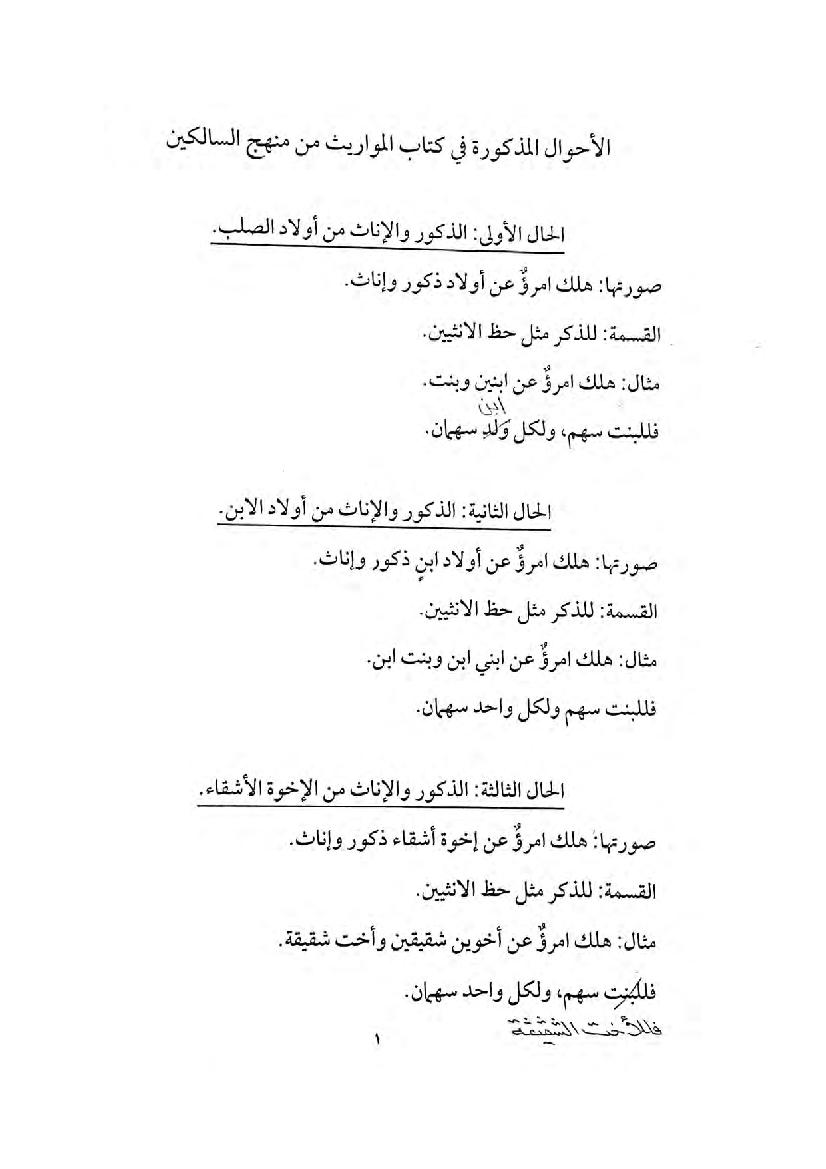 تفريغ شرح منهج السالكين وتوضيح الفقه في الدين الأحوال المذكورة في كتاب المواريث