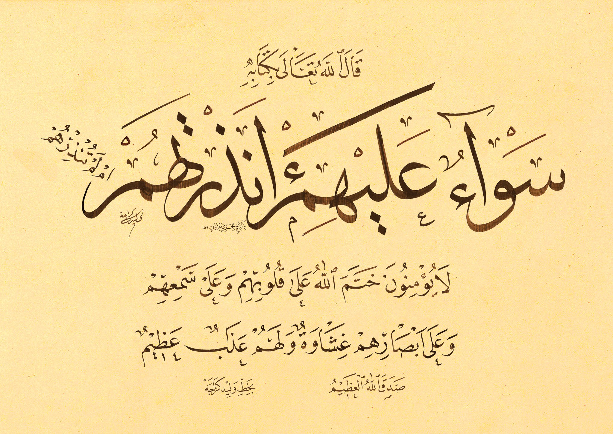 ختم الله على قلوبهم وعلى سمعهم وعلى أبصارهم غشاوة ولهم عذاب عظيم Islami Sanat Sanatcilar Hat Sanati